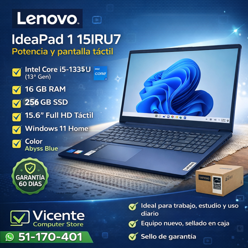 Lenovo ideapad 1/ i5-1335U/ 16GB DDR4/ 256GB SSD/15.6"FHD TÁCTIL